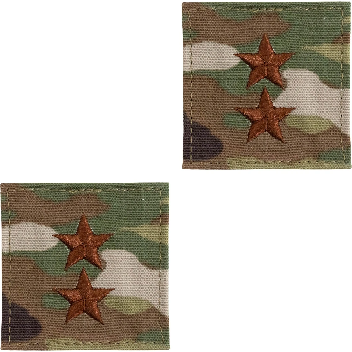 Air Force Officer Rank Major General Point To Center Hook & Loop O-8 (OCP). Nametapes, Branch of Service Tapes, Rank, and Occupational Badges have all changed from the 7-color OCP material to a 3-color OCP material for better contrast. This was a change done in 2020 and is the new certified and approved material for Air Force and Army.